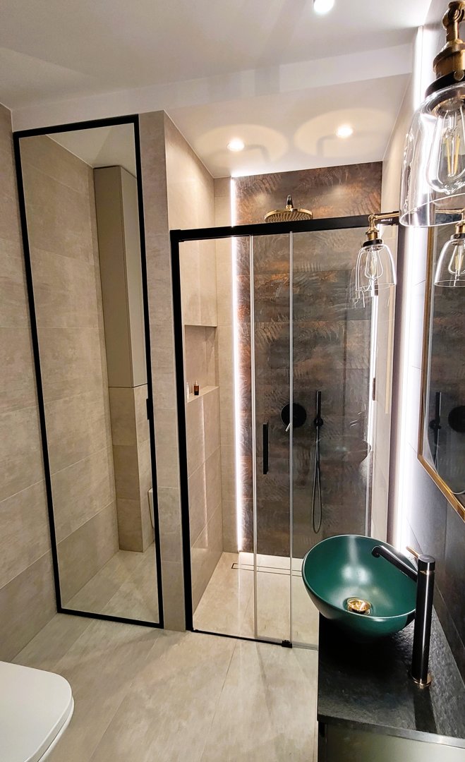 Prysznic, toaleta, pralka, umywalka, suszarka do włosów, lustro, ręczniki